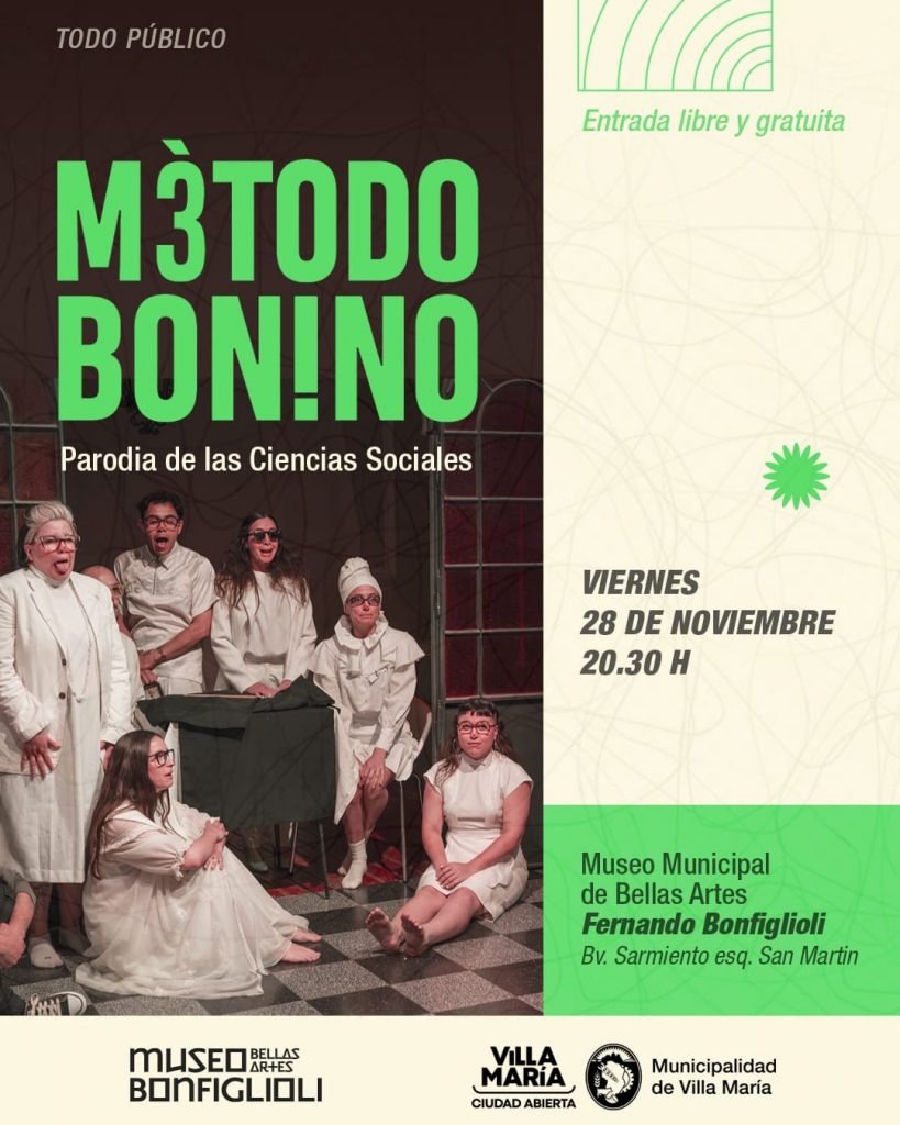 El Museo Municipal de Bellas Artes Fernando Bonfiglioli invita a toda la comunidad a disfrutar de “M3TODO BON!NO”, una propuesta escénica que parodia —con humor, creatividad y frescura— las prácticas y discursos de las Ciencias Sociales.