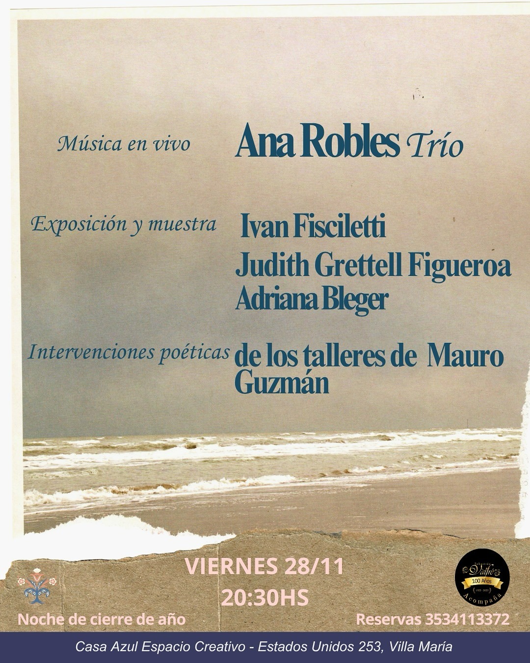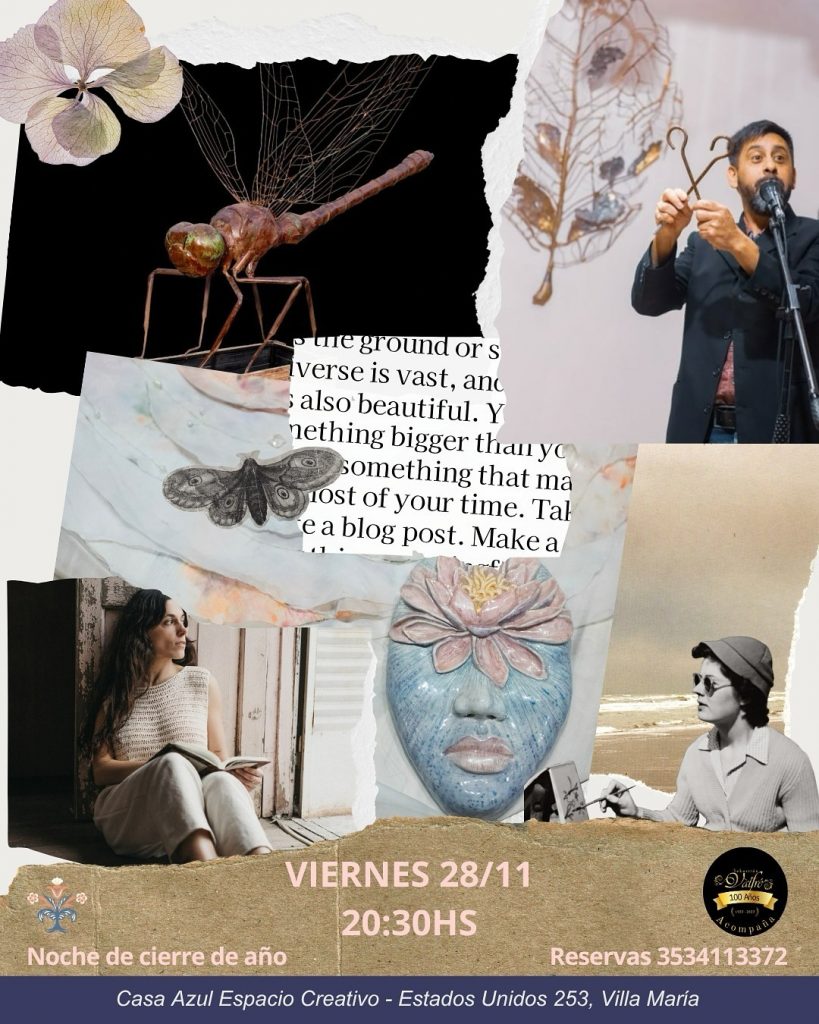 Se acerca la última fecha del año en Casa Azul Espacio Creativo, y el espacio invita a disfrutar de una velada llena de música, arte, poesía y sabores. La actividad se llevará a cabo el viernes 28 de noviembre a las 20:30 hs en Casa Azul (Estados Unidos 253, Villa María).