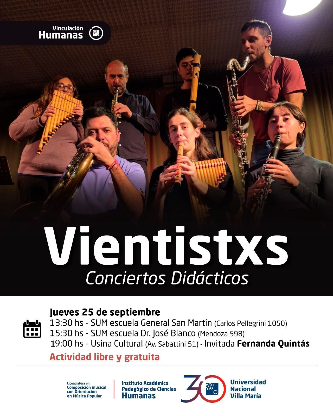 Hoy a las 19 h, La Usina se llena de música con la presentación de VIENTISTXS, un ensamble integrado por Milena Lippl, Lautaro ...