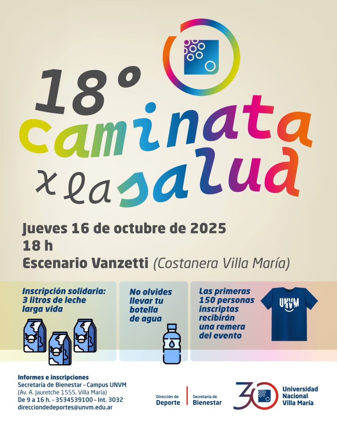La Caminata por la Salud 2025 se realizará el próximo jueves 16 de octubre, convocando nuevamente a la comunidad a participar de una ...